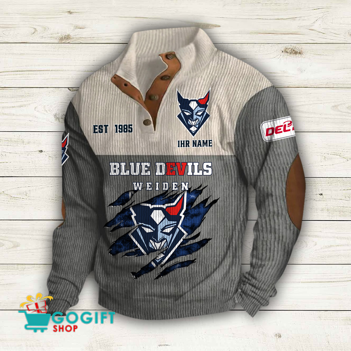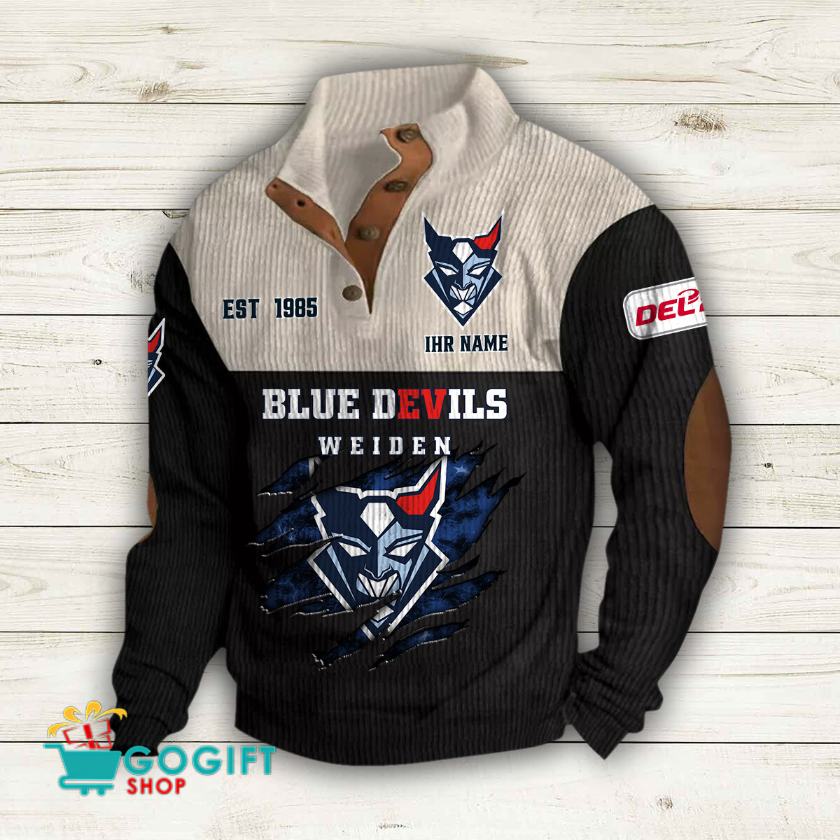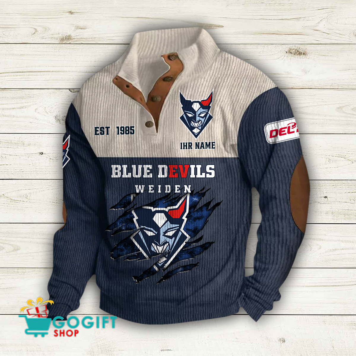 - Klassisches Design: Knopfleiste am Kragen und gerippte Bündchen und Saum für einen zeitlosen Look.
