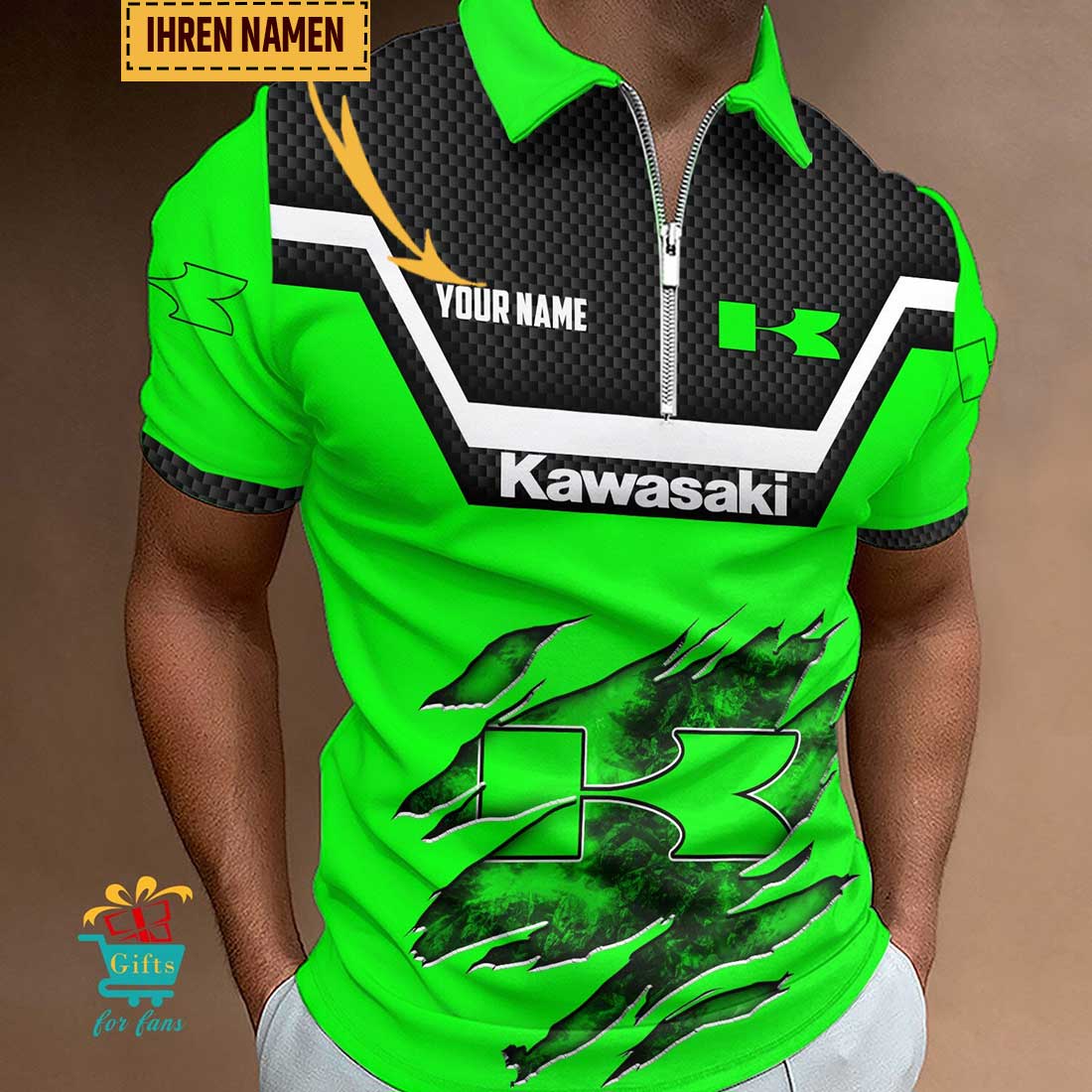 Kawasaki Individueller Name Neues Design Reißverschluss Poloshirt Produktmerkmale
