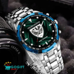 Zeigen Sie Ihren Stolz mit der SC Preußen Münster Steel Watch, einer eleganten Uhr, die Fantreue nahtlos mit zeitlosem Stil verbindet.